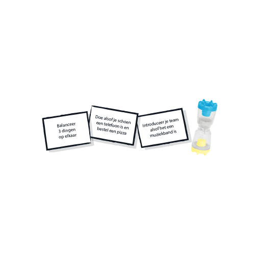 “Sta op en doe de YMCA. Stel jezelf netjes voor zonder je mond dicht te doen. Noem drie landen die beginnen met de letter B. Gebruik je eigen sok als handpop. Noem alle dingen op die je vandaag hebt gegeten”.