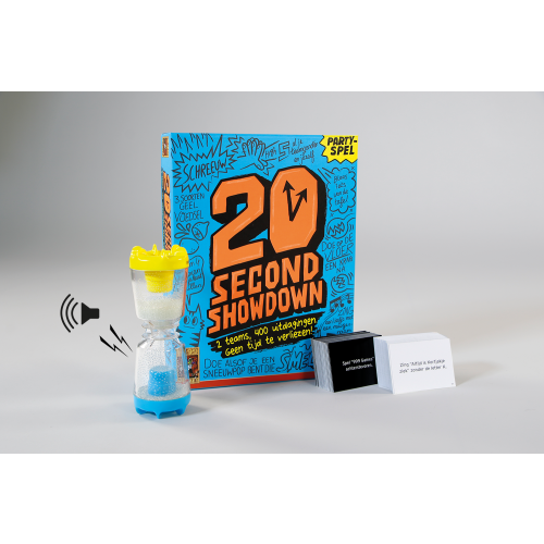 20 Seconds Showdown, 20 Second Showdown is een vliegensvlug spel voor 5-20 spelers. Eén speler is de scheidsrechter. De anderen verdelen zich over twee teams, gaan tegenover elkaar zitten en zetten zich schrap.