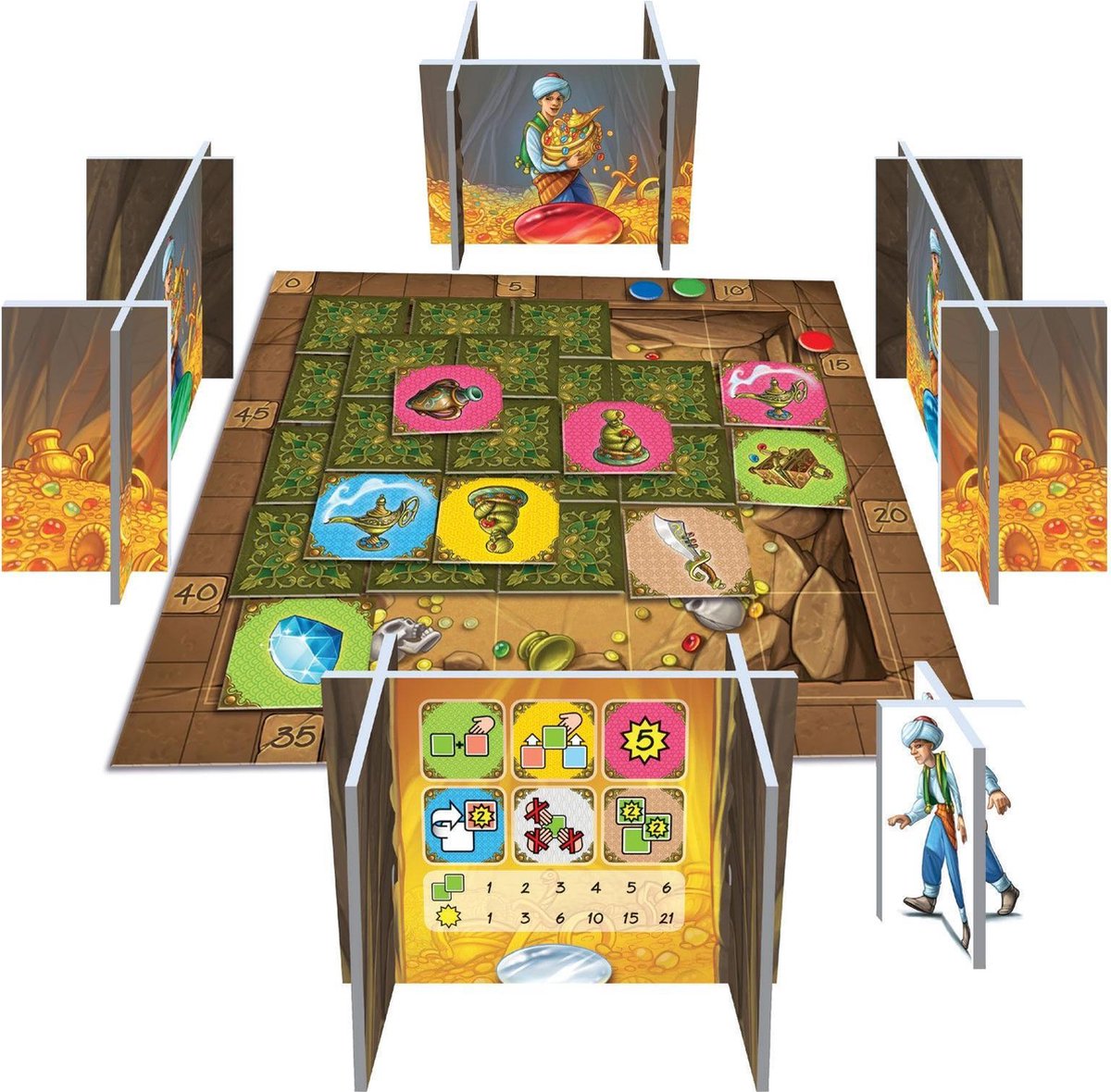 Waan je in de wereld van luxe. Verzamel schatten uit de grot van de 40 rovers. Hoe meer schatten je van dezelfde soort hebt, hoe meer punten je scoort. Gebruik de magische krachten van de schatten om je tegenstanders te slim af te zijn, wordt de rijkste speler en win het spel! Ali Baba is een kort en vlot spel. Het kent eenvoudige regels en is daarom een ideaal familiespel. Dit spel is inclusief verschillende speelvarianten. Dit is inclusief een aparte variant voor 2 spelers. Het spel is geschikt van 2-4 personen vanaf 8 jaar. De gemiddelde speeltijd is 20 minuten.