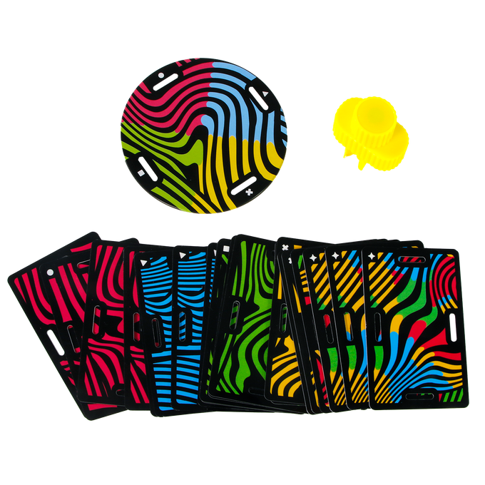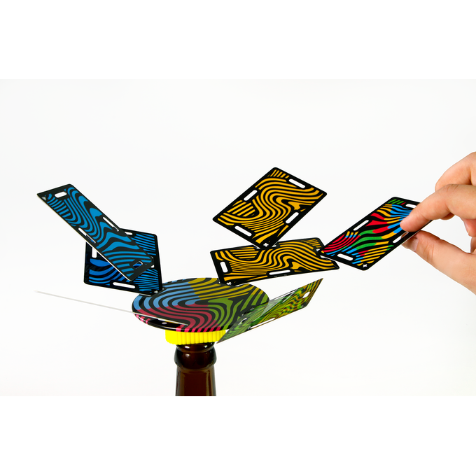 Balanceer steeds kaarten op een fles zonder dat er kaarten vallen. Daarbij moet je een kaart steeds in een andere kaart van dezelfde kleur steken of er een kaart aan hangen. Een magnetische schijf zorgt ervoor dat alles redelijk lang goed gaat. Vallen er toch kaarten, dan krijg je strafpunten!