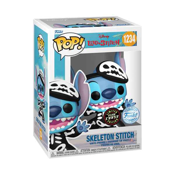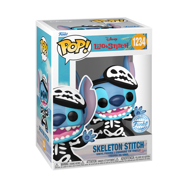 Pop! Skeleton Stitch is dressed as a skeleton to add an element of cute and loveable to your Halloween decor. The Lilo & Stitch family, and Halloween decorations, wouldn’t be complete without the exclusive, glow-in-the-dark Skeleton Stitch to accompany Lilo. Vinyl figure is approximately 8.9 cm tall.