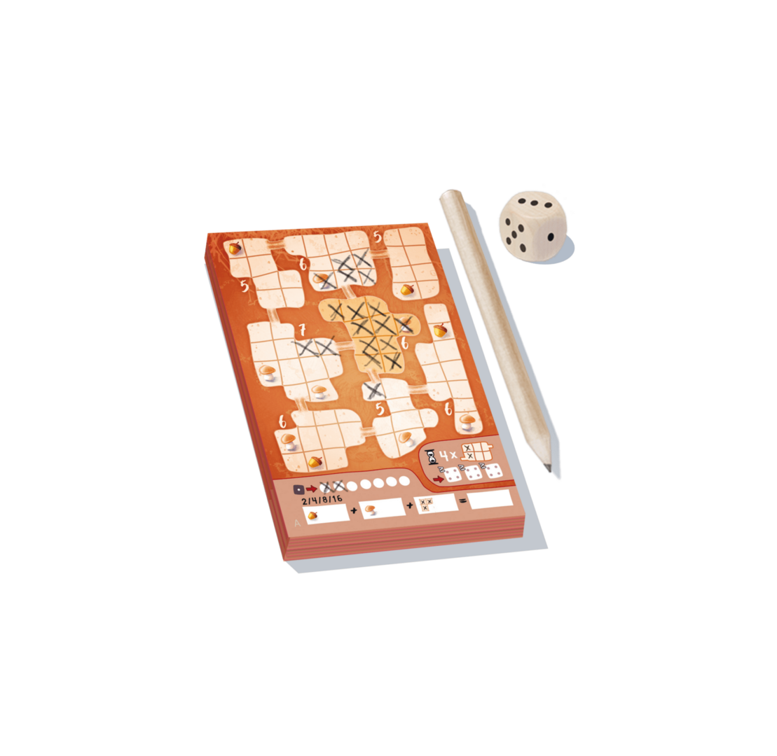 Voordat de winter komt, moet je op zoek naar voedselvoorraden, maar alleen volledig gevulde kamers vullen je maag en leveren punten op. In Hamsteren probeer je alle kamers te vullen door alle velden in die kamer aan te kruisen. Als het resultaat van de dobbelsteen hoger is dan het aantal beschikbare velden in een kamer, moet je velden in een andere kamer aankruisen. Is er genoeg tijd om alle kamers te vullen?