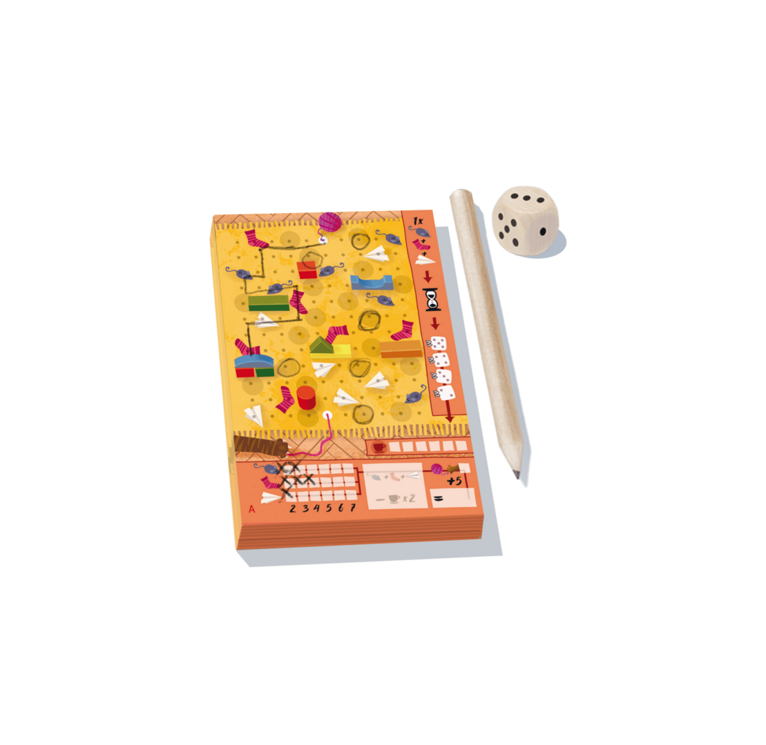 Je kat rent door de kamer in een poging om de bol met wol te pakken te krijgen. Lukt het je de draad zo af te wikkelen zodat de kat naar zijn favoriete speeltjes wordt gelokt? Het is belangrijk om op het juiste moment van richting te veranderen: je moet de wol zover afwikkelen als de dobbelsteen aangeeft, maar je mag slechts 1 keer per ronde van richting veranderen. Pas op dat je niet in de knoop komt te zitten!