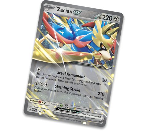De Pokémon Slashing Legends Tin Zacian EX bevat: