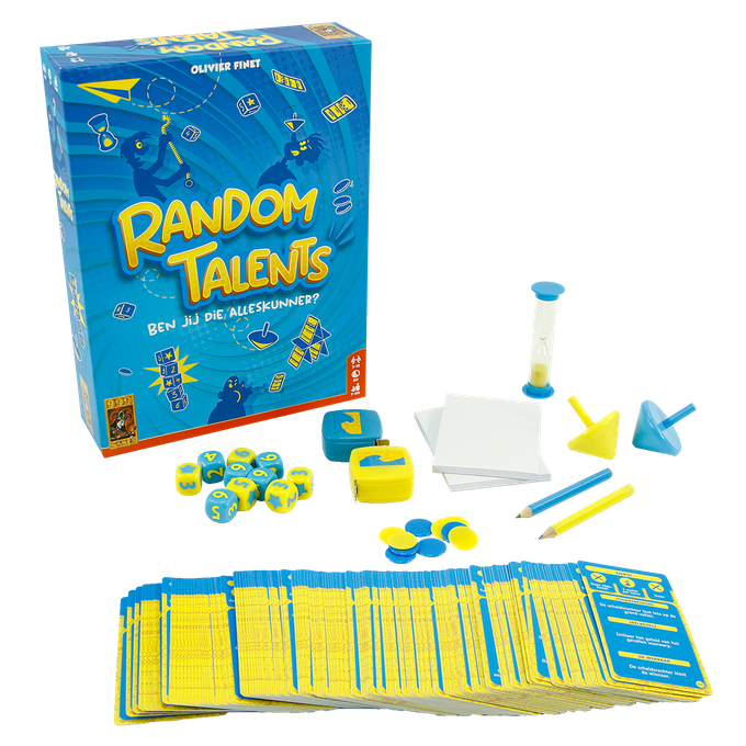 Random Talents is het leukst met 3 teams van elk ten minste 2 spelers. Daarom is dit spel geschikt voor grotere groepen die het leuk vinden om elkaar in verschillende opdrachten uit te dagen. Omdat er voor elk wat wils tussen zit, zoals behendigheid, woordenschat, geluk, reactiesnelheid of concentratie, zal iedereen, van jong tot oud, veel plezier aan dit spel beleven!