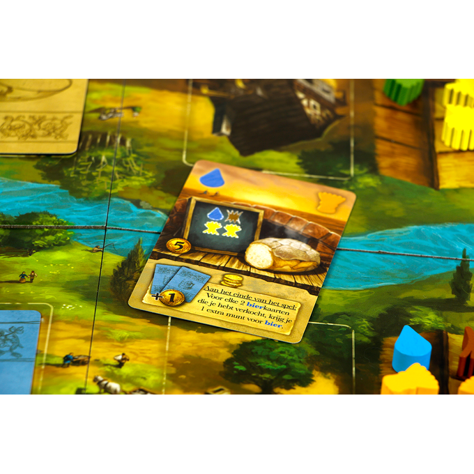 Brood en Bier is een strategisch spel voor 2 spelers.Door kaarten te spelen oogst je grondstoffen, verbeter je je dorp en verkoop je bier en brood. Elke kaart kan op drie verschillende manieren worden gebruikt. Schuif de kaart boven het speelbord voor een oogst, onder het speelbord voor een uitbreiding van het dorp of leg de kaart af om bier en brood te verkopen.
