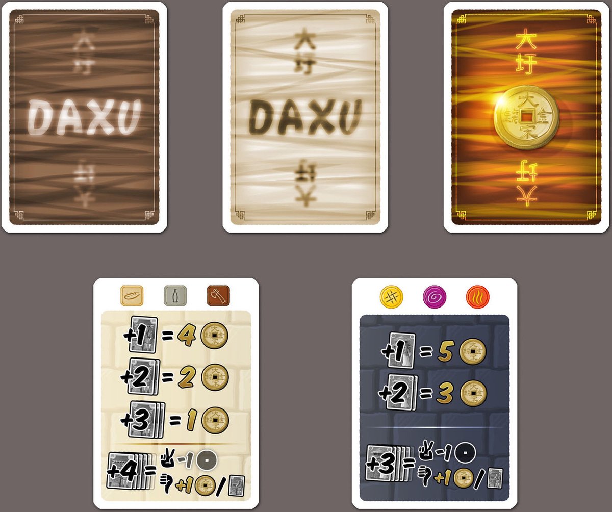 DAXU is een spel waarin spelers sets kaarten verzamelen van de 6 verschillende soorten winkels. Elke ronde worden er verschillende kaarten opengedraaid en kiezen de spelers of zij kaarten voor zichzelf willen houden of aan hun tegenstander willen geven.