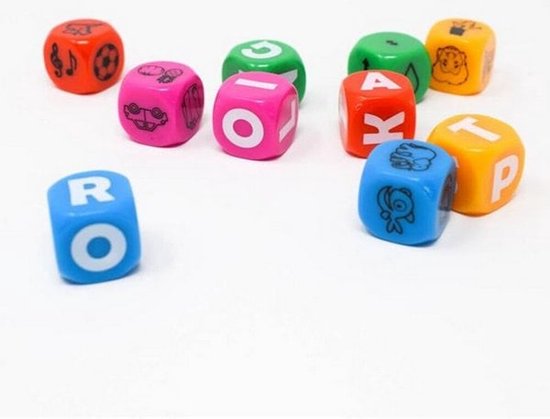 Gooi de dobbelstenen, bekijk de thema’s en koppel deze aan de letterdobbelstenen. De eerste speler die het aantal punten verzamelt dat aan het begin van het spel gekozen werd, wint het spel.