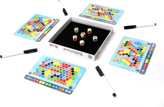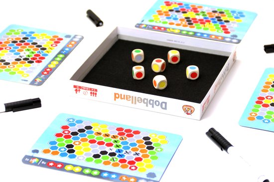 Dobbelland is een vlot dobbelspel voor de hele familie. Het spel kent eenvoudige regels: gooi dobbelstenen, kies een kleur en kruis zoveel velden aan als de kleur die je gegooid hebt. De andere spelers mogen een andere (gegooide) kleur aankruisen. Speel het spel slim: je moet precies uitkomen met je gegooide dobbelstenen en schatvelden leveren een bonusbeurt op. Wie heeft als eerste negen schatvelden of alle velden van één kleur aangekruist? Die wint! Het spel bevat afwisbare bordjes (met acht verschillende speelvelden) voor oneindig speelplezier!