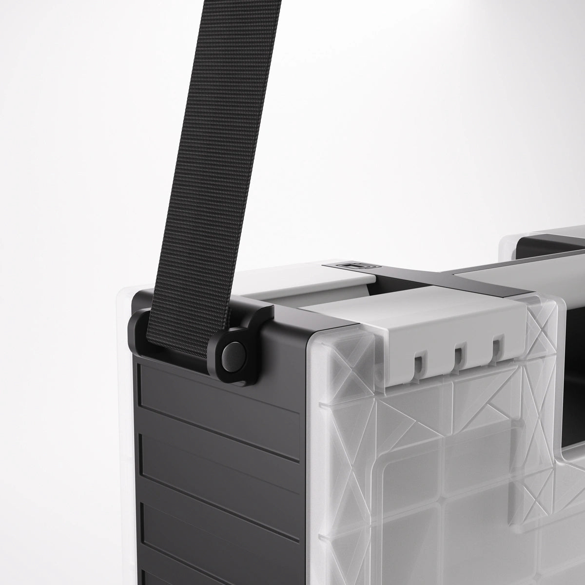 The Game Castle is an ingenious, double-sided, all-in-one solution for board gamers, card game players, and tabletop fans. This brand-new product can be opened on either side to allow separate access to a large number of cards and tokens. The innovative design provides safe storage while also enabling easy and comfortable transportation to game nights or tournaments with the integrated, reinforced handle and detachable, adjustable shoulder strap.