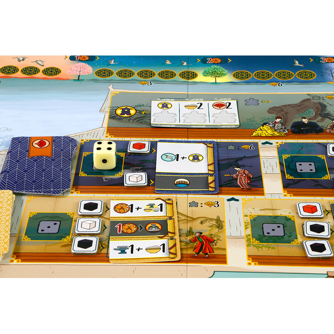 De verschillende grondgebieden, zoals de bron, de trainingsterreinen en het kasteel bieden verschillende actiemogelijkheden. Zo kun je munten, daimyozegels en grondstoffen ontvangen, maar ook tuinmannen installeren of stamleden als hovelingen op de sociale ladder binnen het kasteel laten klimmen totdat ze misschien wel de etage van de daimyo bereiken. Tijdens het spel scoor je al wat punten, maar het is vooral te doen om de situatie aan het einde. Dan leveren je hovelingen op verschillende manieren punten op.