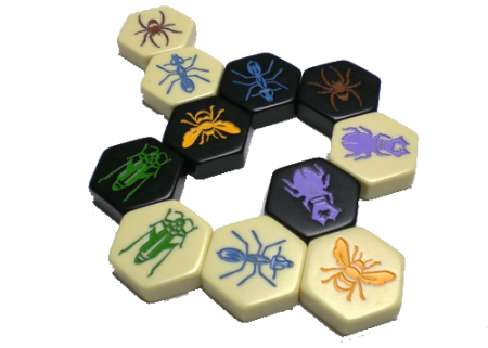 Hive speel je met 2 spelers en het doel van het spel is om de bijenkoningin van de tegenstander volledig te omsluiten.