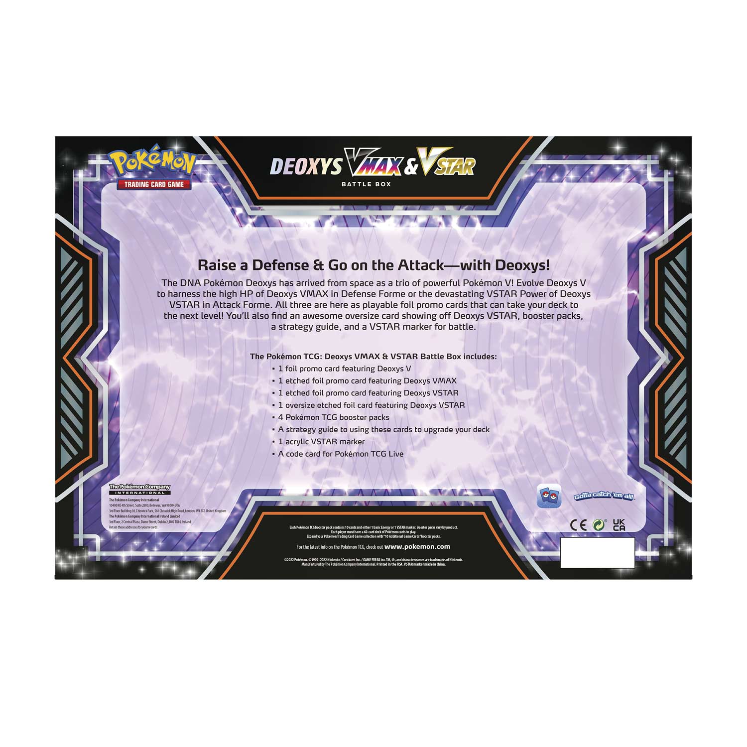 De Pokémon Deoxys VMAX & VSTAR Battle Box bevat:
