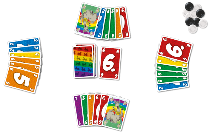 Je krijgt minpunten in de vorm van fiches. Lukt het je om al je kaarten kwijt te raken, dan mag je een fiche teruggeven. En dat mag er één van waarde 1 of van waarde 10 zijn. Aan het einde wint de speler met de minste minpunten!