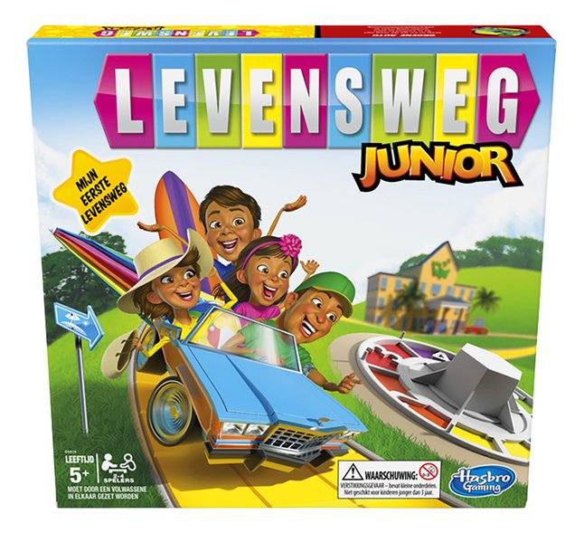 Dit grappige, snelle spel is hetzelfde als de versie voor volwassenen, maar dan met veel coolere autootjes en attracties. Kies uit de Blauwe Wieler, de Roze Cabrio, de Gele Racer of de Groene Rijder en start je eigen leven. Geniet van mooie momenten op het strand of in de dierentuin – jij kiest! Verzamel sterren en kijk hoe actiekaarten en attracties, zoals het pretpark of de chocoladefabriek, je lot kunnen veranderen. Wie als eerste 10 sterren bijeenkrijgt, wint het spel.