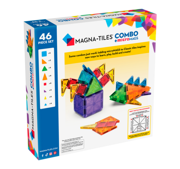 Pindakaas en jam, MAGNA-TILES® en Betekenisvol Spel, microMAGS tegels en Classic tegels – sommige combinaties werken gewoon! Onze kindertesters waren helemaal weg van hoe microMAGS en Classic tegels samenwerkten om unieke bouwwerken te creëren, dus hebben we ze samengebracht in een nieuwe lijn van MAGNA-TILES® Combo sets! Ontdek coole nieuwe manieren om te leren, spelen, bouwen en creëren met dit geweldige assortiment van standaard- en microgrootte tegels.