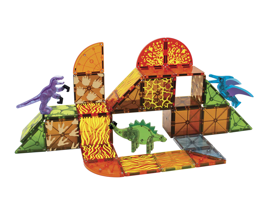 Vulkanische explosies, gesmolten lava en woeste dinosaurussen komen eraan! De Dino World 40-delige set bevat vier oversized, volledig magnetische dinosaurussen en felgekleurde tegels met vulkanenthema voor fantasierijke speelmogelijkheden die nooit uitsterven.