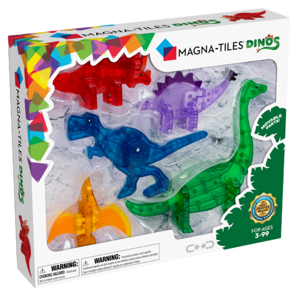 Stampen, stampen, brullen en zweven! Bereid je voor op eindeloze uren schermvrij speelplezier en te grote speelmogelijkheden met deze grote magnetische dinosaurussen. Unieke, levendige kleuren en bewegende onderdelen stimuleren onbeperkt speelplezier en STEAM-leren.
