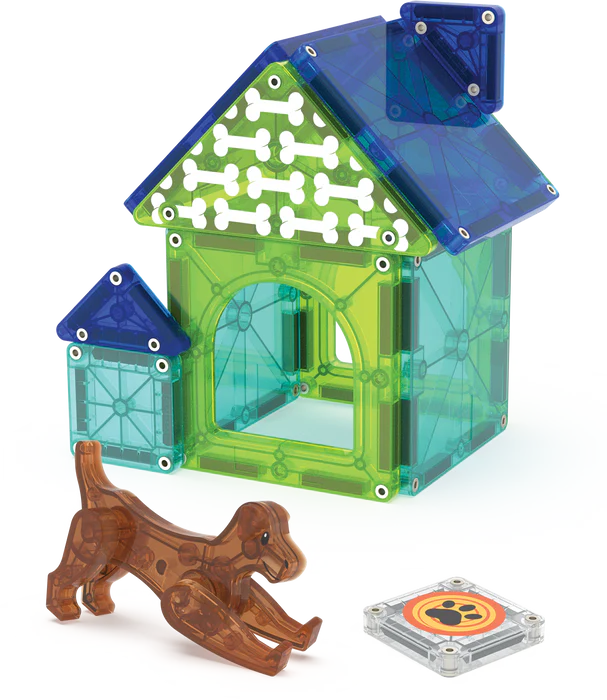 De MAGNA-TILES Dog House 13-delige set is speciaal ontworpen met microMAGS decoraties en een schattige hondenfiguur, waarmee kinderen een knus huis kunnen bouwen en versieren voor hun trouwe viervoeter – voor fantasierijk en vrolijk spel.