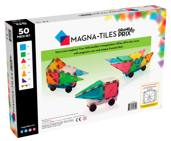 - De door Grand Prix Racing geïnspireerde MAGNA-TILES®-set bevat een chassis met wielen en unieke, matte tegels.
