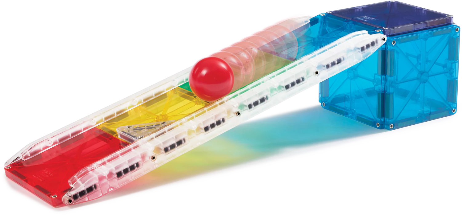 Klaar voor de start… af! Rol eindeloos door met de MAGNA-TILES Rail Racers 33-delige set! Deze actievolle set is de perfecte introductie tot bouwen en beweging, waarin magnetische magie wordt gecombineerd met creativiteit en snelheid. Met gepatenteerde Rails (in aanvraag) kunnen kinderen eenvoudig racebanen, hellingen en bruggen bouwen voor non-stop rollend speelplezier. Laat de meegeleverde bal razendsnel over jouw unieke ontwerpen racen – of het nu een rechte baan, scherpe bochten of spannende sprongen zijn – en zie hoe fantasie tot leven komt!