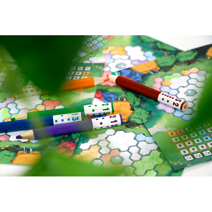De Pick-a-Pen-serie is een nieuwe generatie innovatieve “Roll & Write”-spellen, waarin werkelijk met potloden wordt gerold. Dit zorgt ervoor dat met hetzelfde speelmateriaal veel verschillende spelmechanismen mogelijk worden gemaakt. Maar in elk spel staat het inkleuren van velden centraal. Scoor jij daarbij de meeste punten?