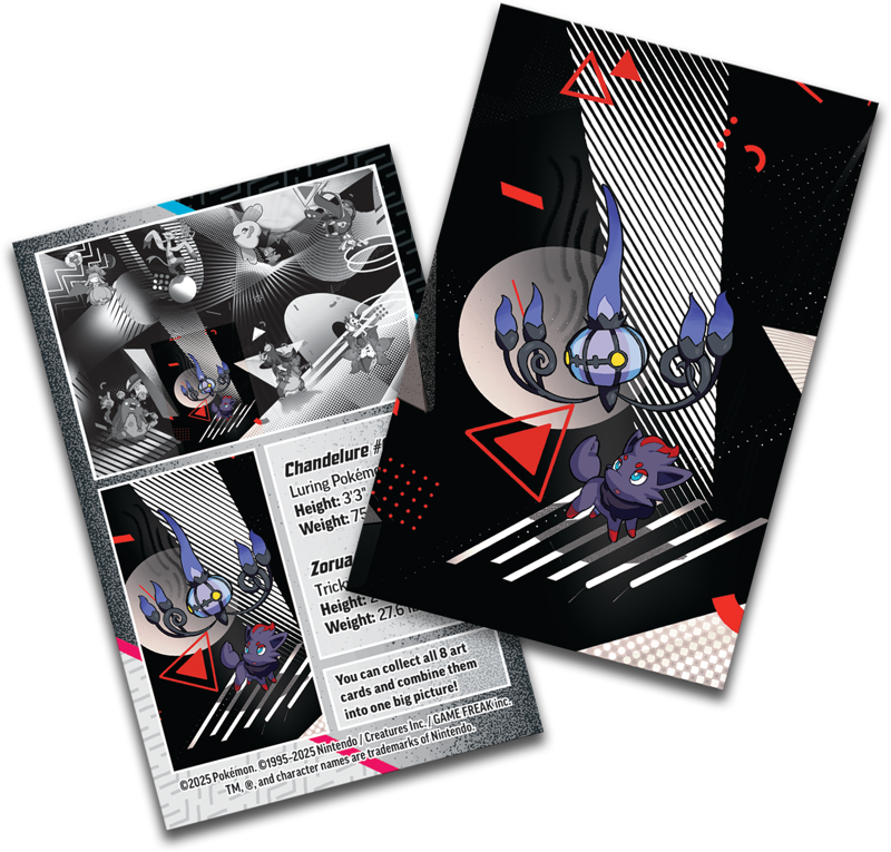 Voeg meer kaarten toe aan je Scarlet & Violet—Black Bolt en Scarlet & Violet—White Flare-collectie en ontvang een leuk verzamelobject met elk prachtig minitinnetje. Er zijn in totaal acht minitinnetjes om te verzamelen, en elk minitinnetje is versierd met artwork dat gecombineerd kan worden tot één grote afbeelding.