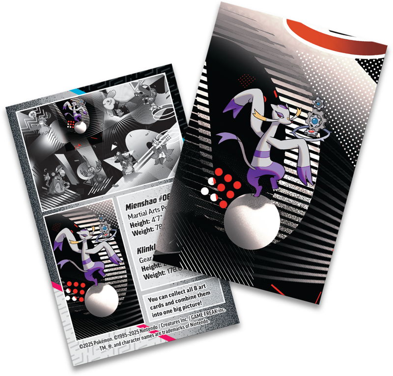Voeg meer kaarten toe aan je Scarlet & Violet—Black Bolt en Scarlet & Violet—White Flare-collectie en ontvang een leuk verzamelobject met elk prachtig minitinnetje. Er zijn in totaal acht minitinnetjes om te verzamelen, en elk minitinnetje is versierd met artwork dat gecombineerd kan worden tot één grote afbeelding.