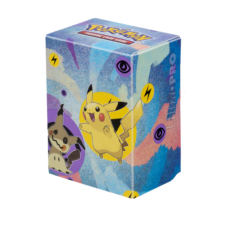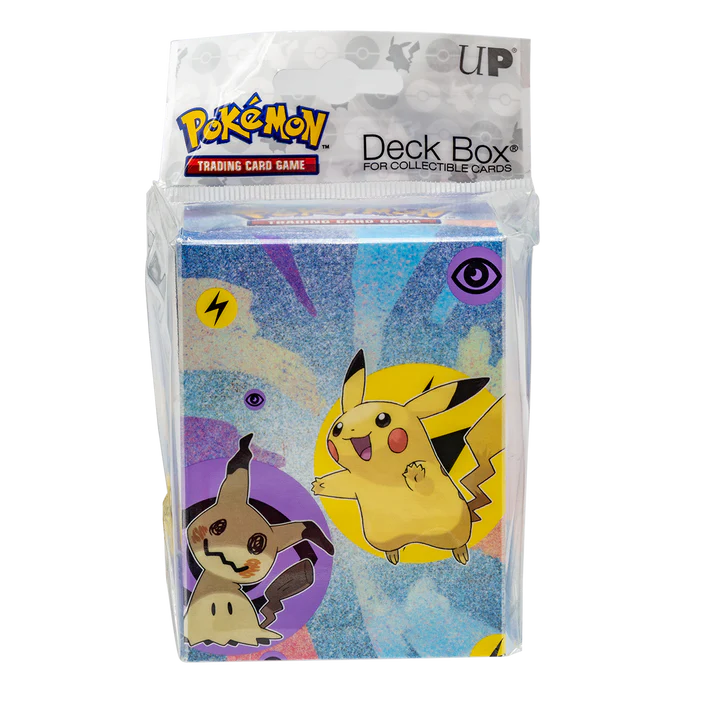 - Officially licensed Pokémon Trading Card Game Deck Box® featuring Pikachu & Mimikyu