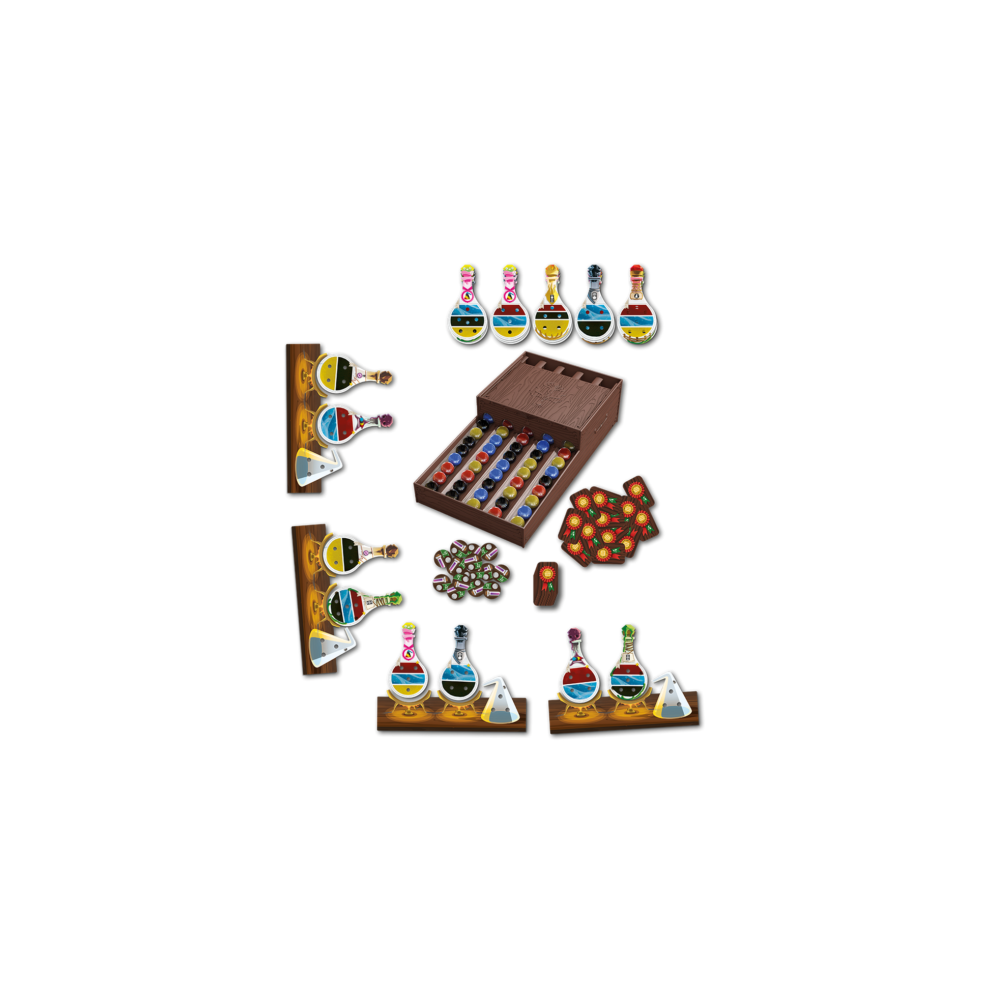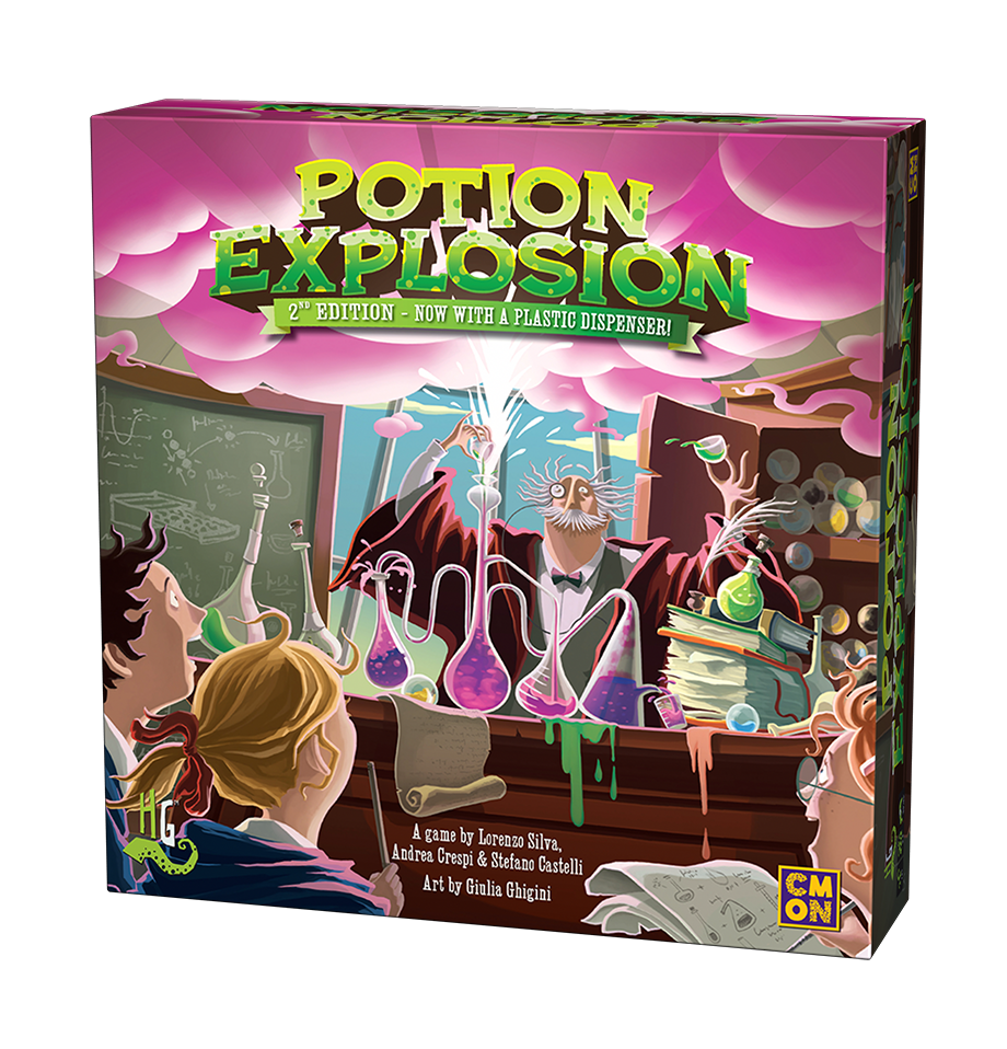 In Potion Explosion™ 2 to 4 players are students attending the final exams of the Potions class! They need to complete their potions using the marbles they collect, drink them to unleash their magical power and ultimately win the Student of the Year award!
