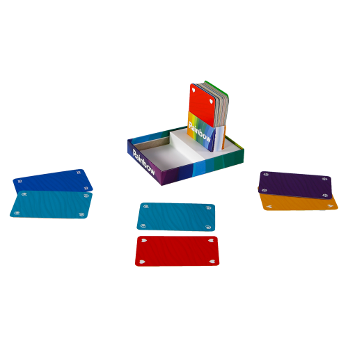 Met Rainbow moet je regenboogsetjes maken van zes verschillende kleuren. Deze maak je door kaarten met kleuren te spelen. Maar je speelt niet alleen met je eigen kaarten. Je speelt ook met de achterkant van de kaarten van de speler tegenover je!