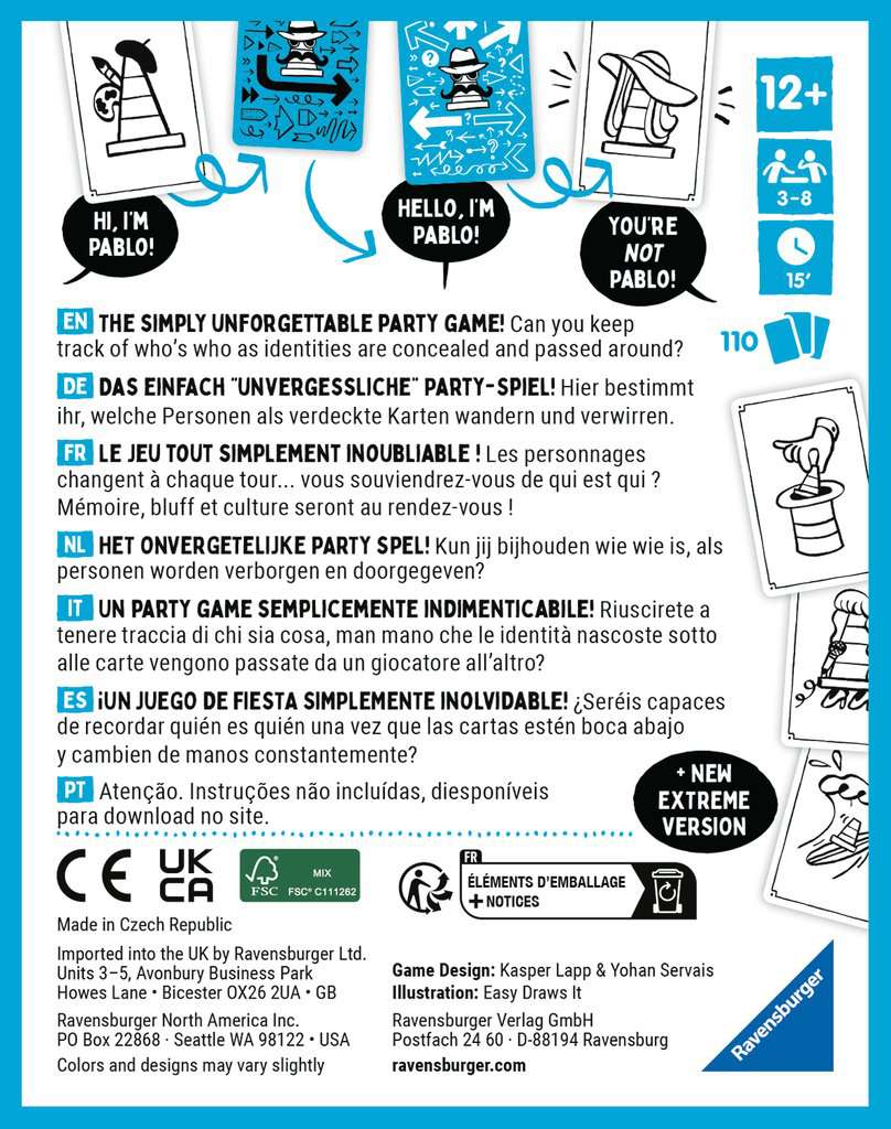 Het onvergetelijke partyspel! Kun jij bijhouden wie wie is, als personen worden verborgen en doorgegeven? Nu met de "Incognito-Twist"! moeilijker wil.