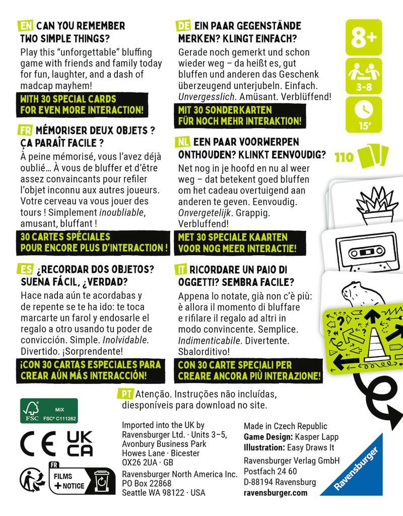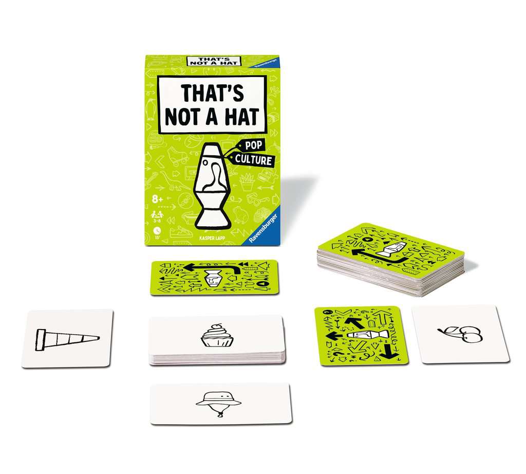 Een paar voorwerpen onthouden? Klinkt simpel? Niet bij That’s not a hat Pop Culture! Dit "onvergetelijke" en geniaal eenvoudige gezelschapsspel laat op een verbazingwekkende en amusante manier zien, hoe gemakkelijk onze hersenen in de war kunnen raken. Net nog in je hoofd en nu is het al weer weg, dan moet je goed bluffen en overtuigend het cadeau naar de anderen laten glippen.
