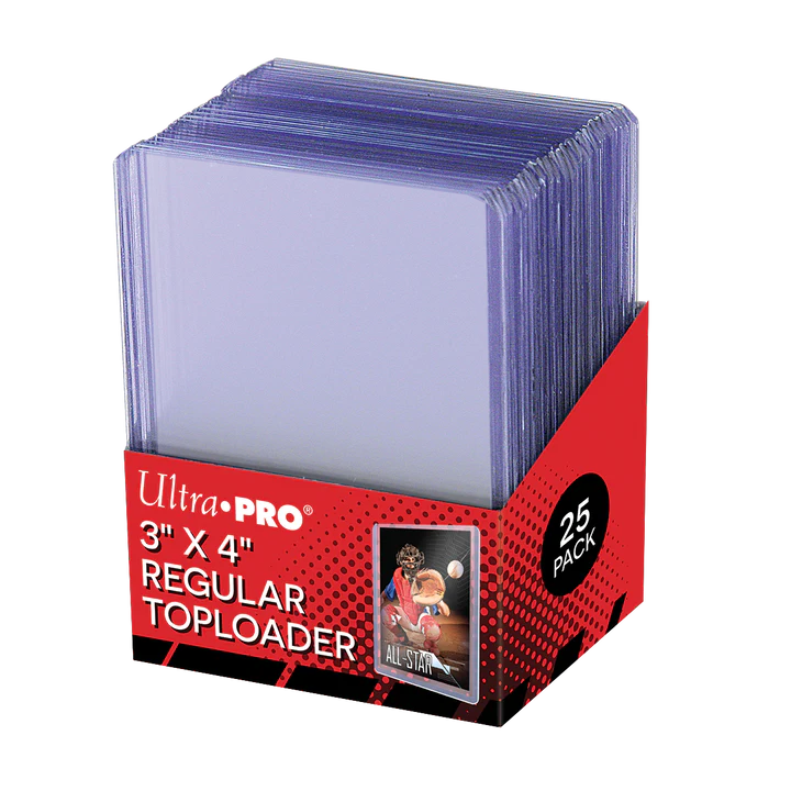 Bescherm je waardevolle verzamelkaarten met de originele Ultra PRO toploaders! Deze harde plastic beschermers zijn gemaakt van superhelder PVC om uw kaarten veilig te bewaren voor opslag, weergave, tijdens handel en verzending. Met buitenafmetingen van 3" x 4", zijn deze toploaders ontworpen om kaarten van standaardformaat (2-1/2" x 3-1/2") veilig op te slaan tot een dikte van 35 punten. Elk pakket wordt geleverd met 25 individuele toploaders. Aanbevolen voor gebruik met Ultra PRO Card Sleeves en Premium Card Sleeves.