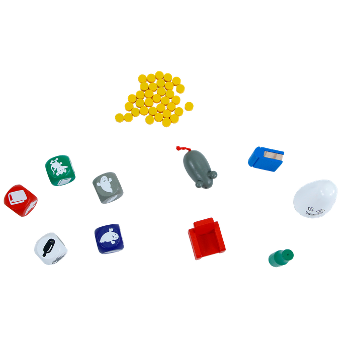 Zet de 5 speelstukken klaar en dobbel de gekleurde dobbelstenen. Kijk nu op de dobbelstenen welk speelstuk het vaakst te zien is. Grijp nu als eerste het juiste speelstuk om een punt te krijgen. Pak je echter het verkeerde speelstuk, dan verlies je punten aan de speler die wel het juiste weet te bemachtigen! Het spel is voorbij zodra de puntenvoorraad leeg is. De speler met de meeste punten wint het spel!